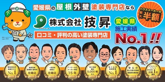 愛媛県で屋根・外壁塗装の事ならお任せください!株式会社技昇は愛媛県内どこでもお伺いします。