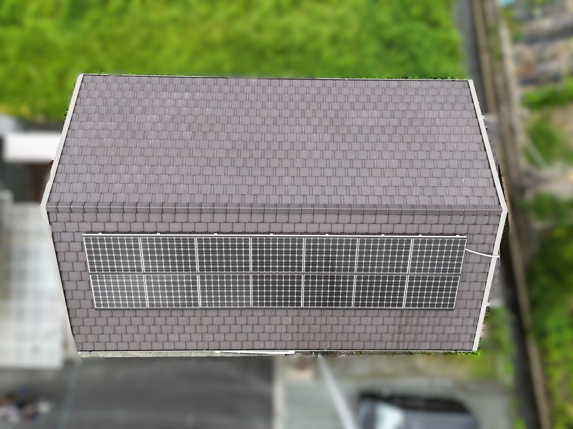 ドローンによる屋根点検。屋根瓦に目立った劣化は見受けられませんでした。