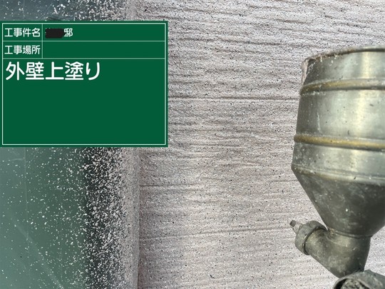 高耐候多彩塗料を専用ガンで吹き付けます